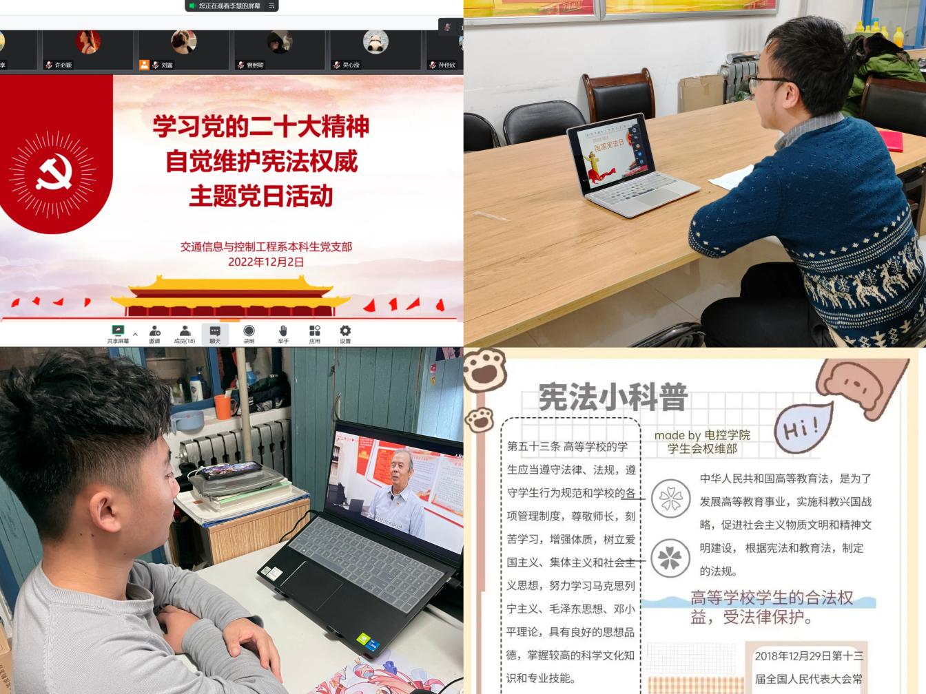 电控学院以第九个国家宪法日、现行宪法实施四十周年纪念日为契机,深入学习党的二十大精神和习近平法治思想,宣传宪法知识,弘扬宪法精神。电控学院在2022年“宪法宣传周”期间组织开展了“三进”活动,即宪法进网络、宪法进支部、宪法进班级,扎实开展宪法相关的主题党日活动、主题班会和网上答题活动,组织学生制作宪法知识学习手账,学生参与率达到100%,活动开展情况被教育部有关网站报道。