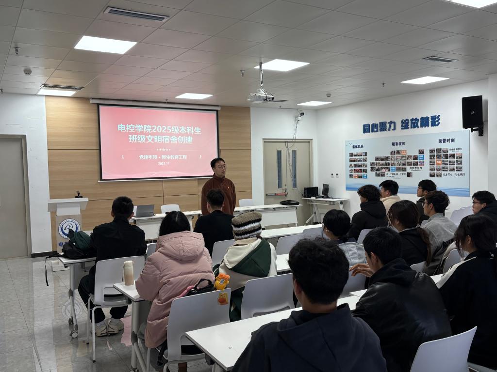 11月7日,电控学院科创领航本科生党支部在渭水校区明德园智通大厦1号楼216会议室组织开展了2025级本科新生文明宿舍建设指导活动。支部副书记孙超、宣传委员吴耀东、学生党员王恒,以及2025级各班班长、生活委员、宿舍长共同参与。