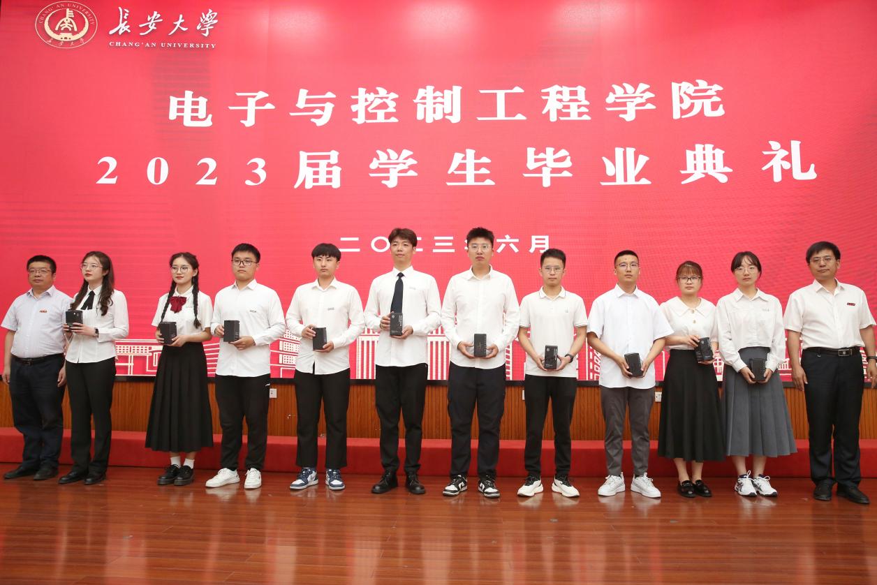 贺炳彦、闫茂德为毕业生代表赠送了学院定制的纪念品。院党委副书记、副院长、纪委书记李炬和副院长龚贤武为陕西省优秀毕业生颁发荣誉证书,副院长路庆昌、副院长惠飞为长安大学优秀毕业生代表颁发荣誉证书。