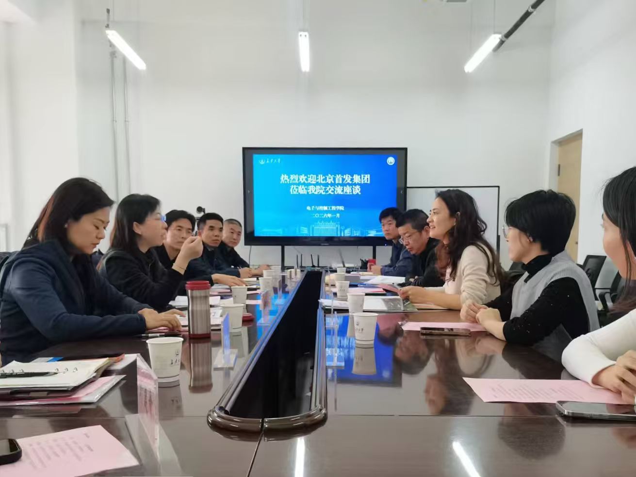 1月14日下午,北京市首都公路发展集团有限公司一行9人到电控学院开展交流座谈,学院院长闫茂德、党委副书记高婷婷、学办主任刘平利出席座谈会。